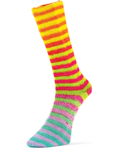 Innfargingen er gjort etter "perfect cycle"-konseptet, slik at man kan strikke to helt like sokker. Midt i hvert nøste finner du en bit hvit/ufarget tråd som markerer hvor du skal begynne neste sokk.