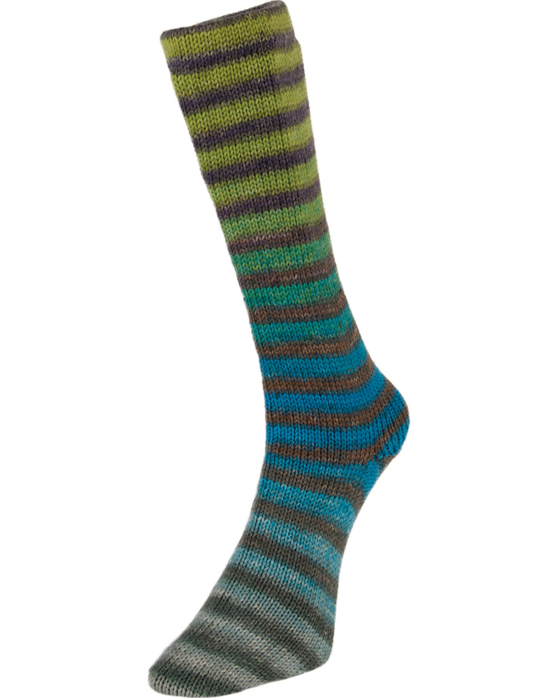 Innfargingen er gjort etter "perfect cycle"-konseptet, slik at man kan strikke to helt like sokker. Midt i hvert nøste finner du en bit hvit/ufarget tråd som markerer hvor du skal begynne neste sokk.