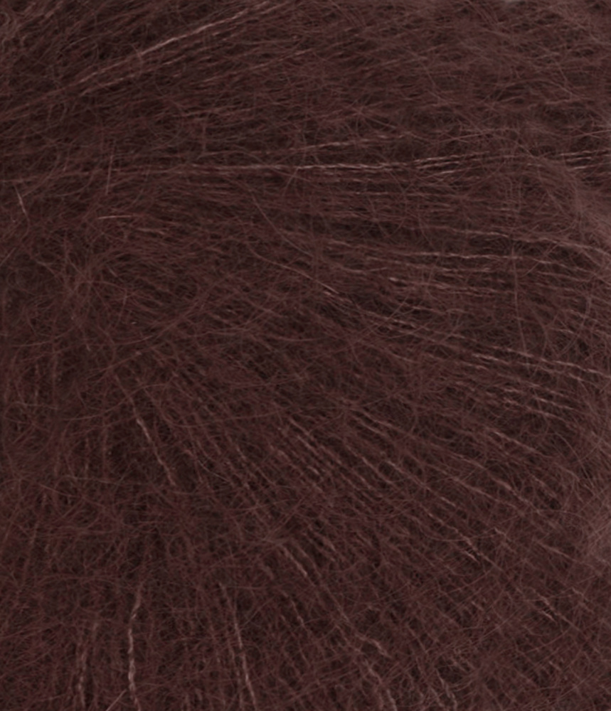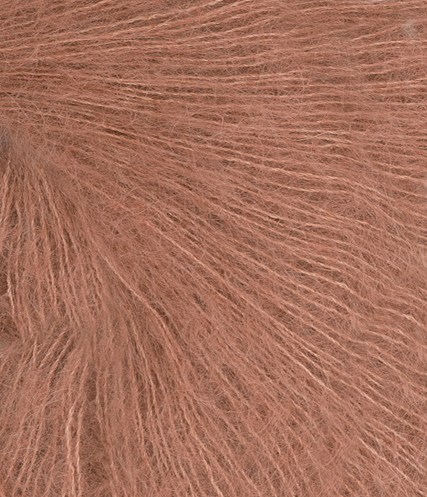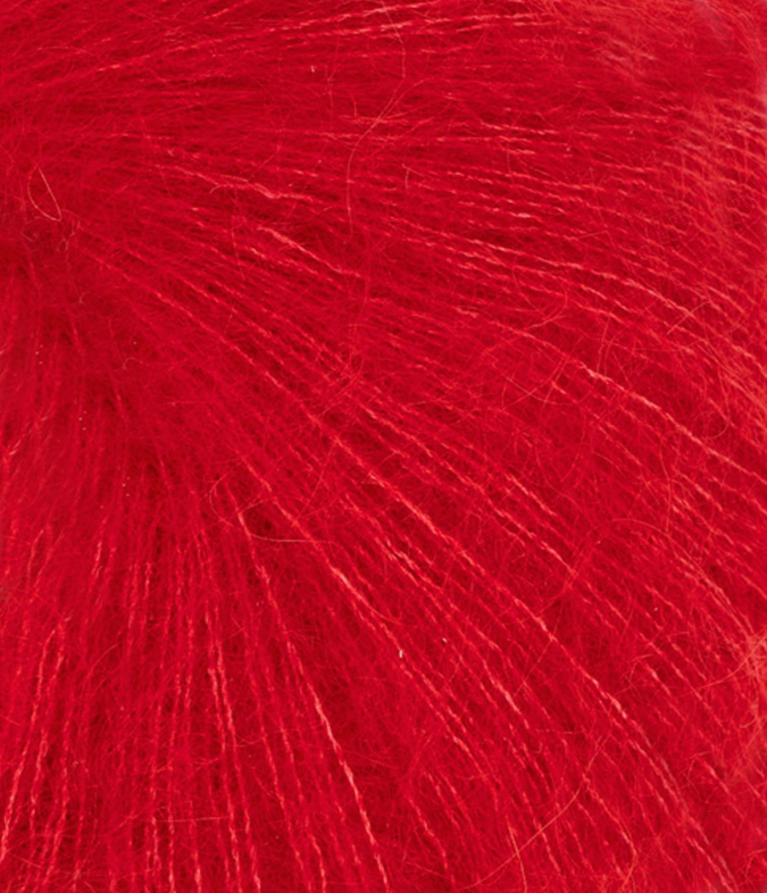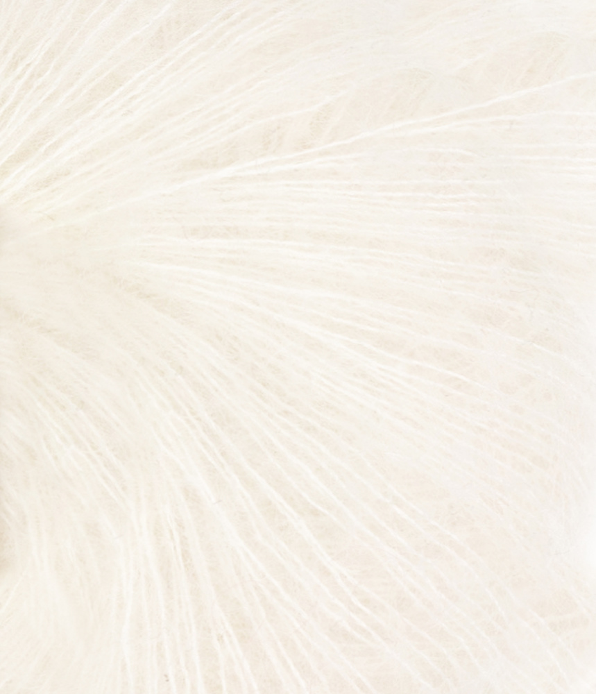 Tynn Silk Mohair inneholder 57% mohair, 15% ull og 28% Silke. Gir florlette plagg og egner seg bra til å strikke sammen med andre kvaliteter for spennende effekter. Plagget må vaskes separat. Silke til denne kvaliteten kommer fra Kina. Mohair fra Sør Afrika